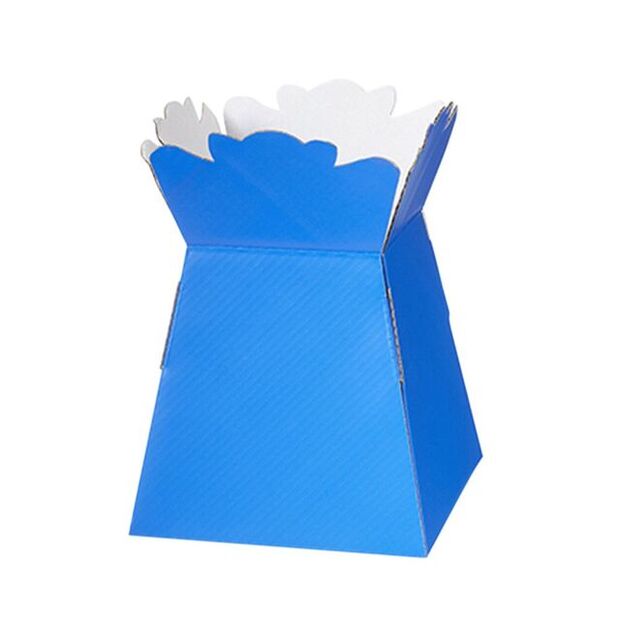 Floralcraft Hand Tied Vase x30 - Marino Blue is a professional-grade presentation box for hand-tied bouquets. Supplied flat-packed in a pack of 30, each box features a pearlised glossy finish and sturdy base for aqua-packed arrangements.