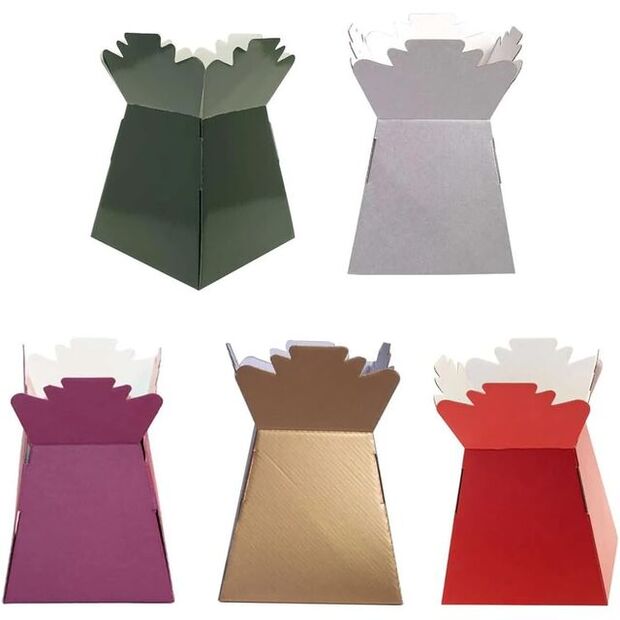 Floralcraft® Hand-Tied Box – Xmas Mix (Pack of 5) is a professional-grade presentation box for hand-tied bouquets. Supplied flat-packed in a pack of 5, each box features a pearlised glossy finish and sturdy base for aqua-packed arrangements.