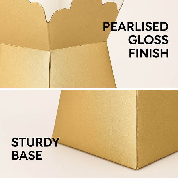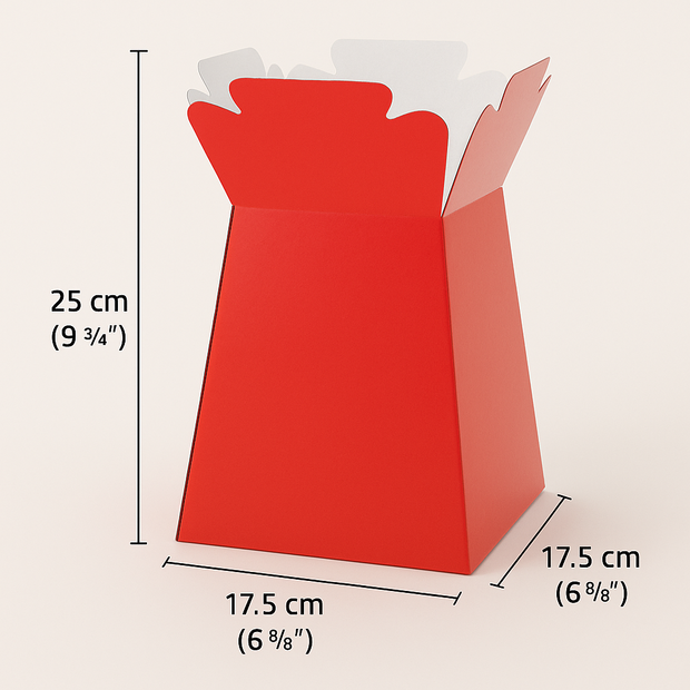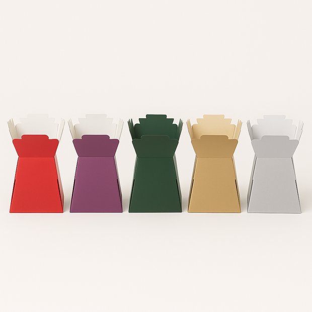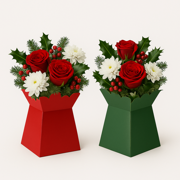 Floralcraft Hand-Tied Vase x30 - Xmas Mix is a professional-grade presentation box for hand-tied bouquets. Supplied flat-packed in a pack of 30, each box features a pearlised glossy finish and sturdy base for aqua-packed arrangements.