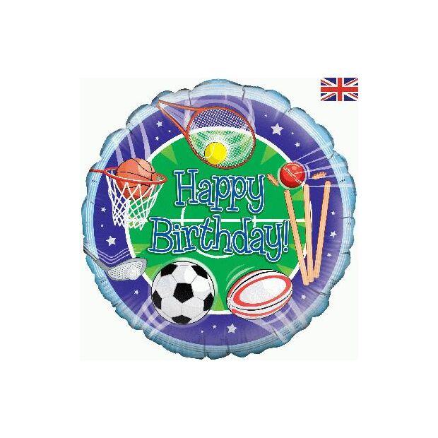 18inch Helium premium quality foil balloon with self sealing valve. Packaged, barcoded and with eurohook slot. Manufactured in the U.K Round Foil BalloonSize: 18" (45.7cm)Birthday Sport DesignUnit of sale: 1 foil balloon