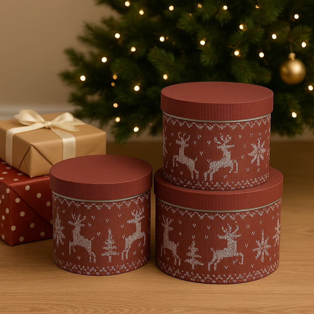 - Elegant Prancing Reindeer Design: Adorned with playful reindeer motifs, these hat boxes bring festive cheer and sophistication to your gifts.