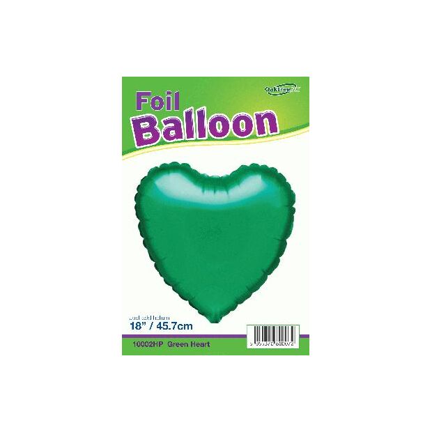 D46cm Green Heart Foil Balloons - remain inflated for days. Round and Star shape plain foil balloons also available - all in a wide range of colours to suit any occasion.