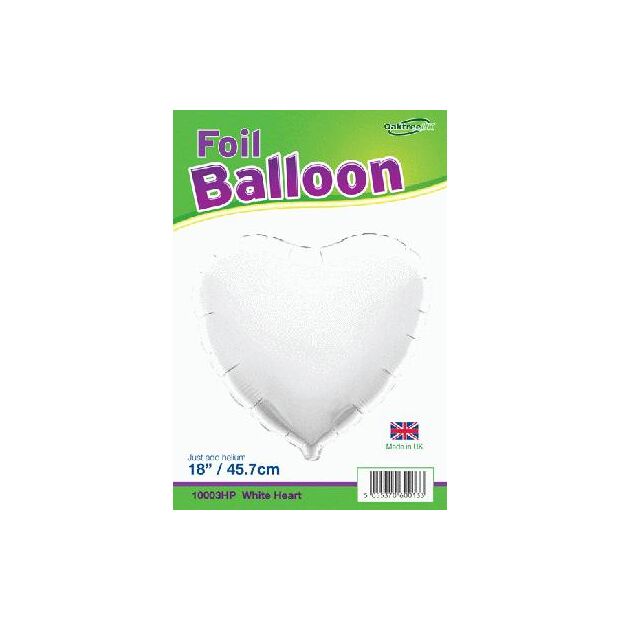 46cm White Heart Foil Balloons - remain inflated for days. Round and Star shape plain foil balloons also available - all in a wide range of colours to suit any occasion.