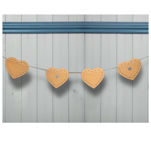 Bring a rustic, romantic touch to any setting with our Heart Bunting – Brown. Made from durable kraft card, this decorative string features heart-shaped cut-outs spaced evenly along a natural twine cord. Perfect for weddings, baby showers, garden parties, or cosy home décor, it adds instant warmth and character. Easy to hang across walls, tables, or photo backdrops, it's a simple way to create a lovely handmade aesthetic. Lightweight, reusable, and charmingly neutral, this bunting blends effortlessly with various themes. A beautiful finishing touch for events where style and simplicity matter.