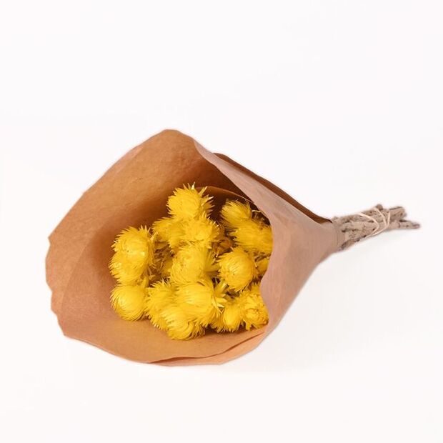 - Rich Yellow Hue: Beautifully dyed Helichrysum flowers in a vibrant yellow colour.