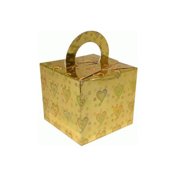 Pack of 10 Balloon Weight/Gift Boxes with holographic gold heart design.