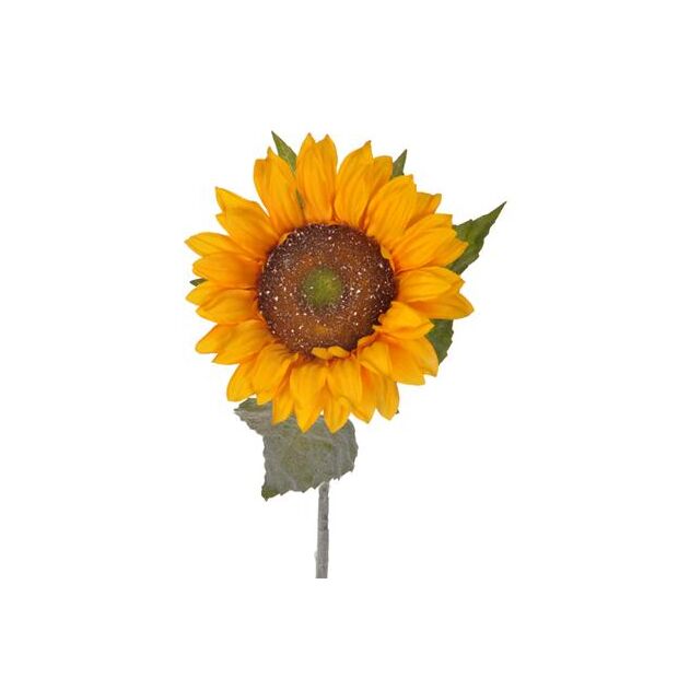 Superb quality large yellow fabric sunflower on a 65cm stem. The flocked stem is 65cm long, each with 6 textured leaves.