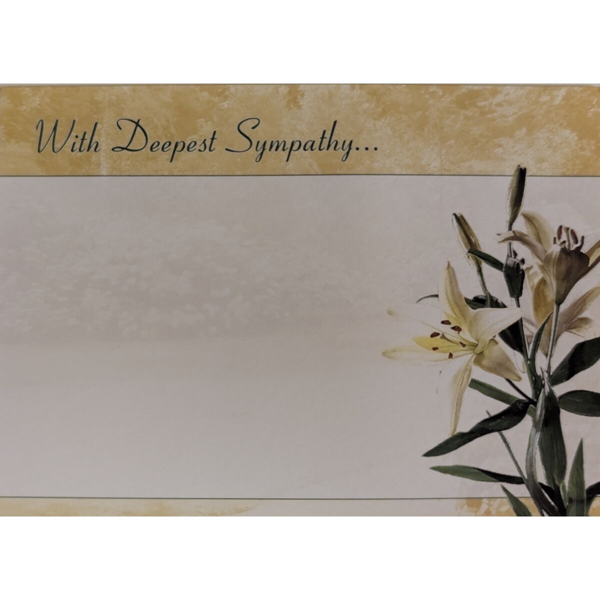 Convey heartfelt condolences with this elegant OASIS® Large Remembrance Card – With Deepest Sympathy. Featuring a graceful stem of white lilies, these large cards are ideal for funeral flowers, sympathy arrangements, and memorial tributes.