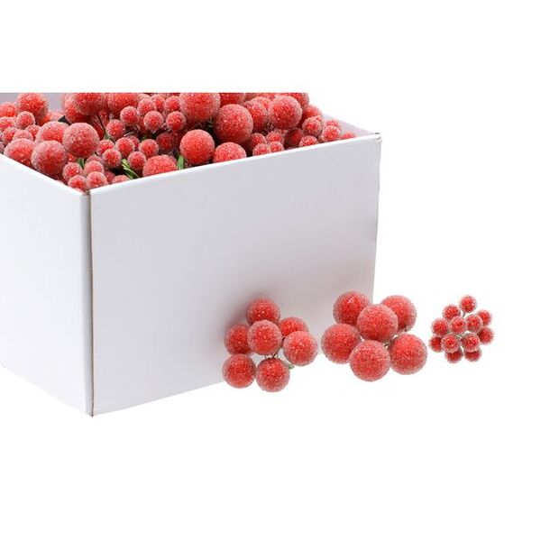 Mixed-size red berry clusters with a delicate frosted finish