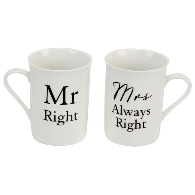 - Includes 2 mugs: “Mr Right” & “Mrs Always Right”