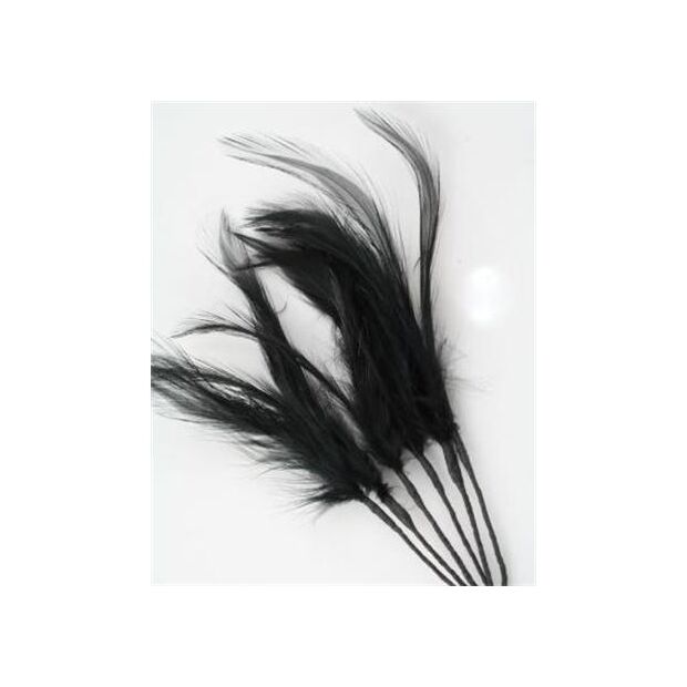 Bunch of 6 delicate narrow feathers on flexible white stems. Perfect for head-dresses and wedding bouquets. Can be colour matched to feathers in our diamond and fluff feather ranges.