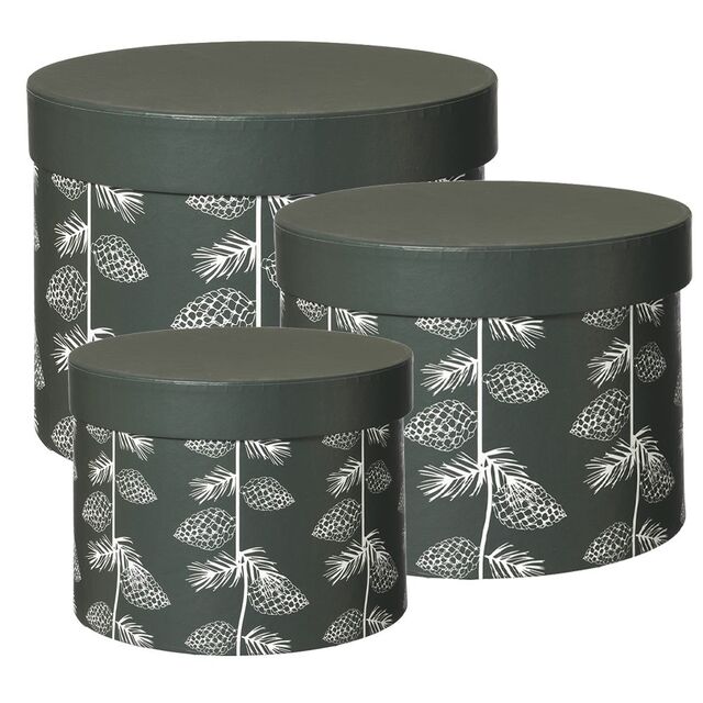 - Quantity: Set of 3 nesting hat boxes