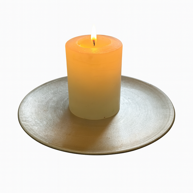 Candle base, floral plate, charger for decorative pieces |