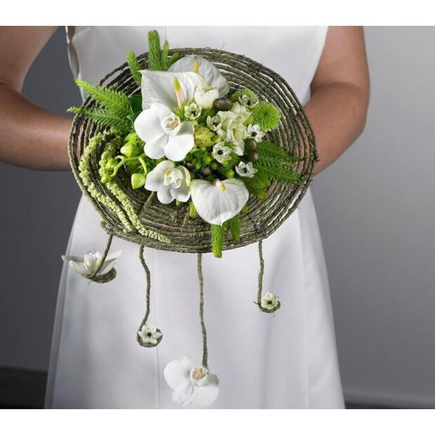 Slender, unobtrusive ivory coloured handle blends with all colours. Wet foam provides a water source for flowers to ensure freshness.