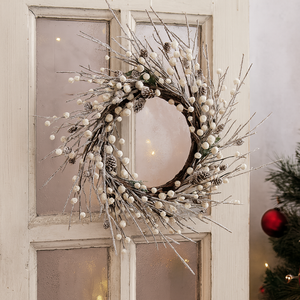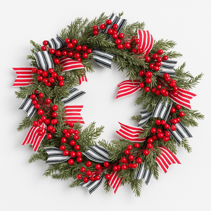• Ready-made wreaths – pine, frosted berry, snow-dusted, eucalyptus, and glittered styles