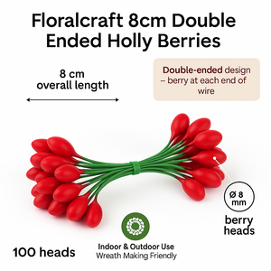 Add berry and accent picks to fill gaps, create texture and contrast — our Floralcraft® 8 cm Double Ended Holly Berries