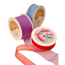 - Wired Organza Ribbon – Features fine wire edges that help bows hold their shape for decorative arrangements.