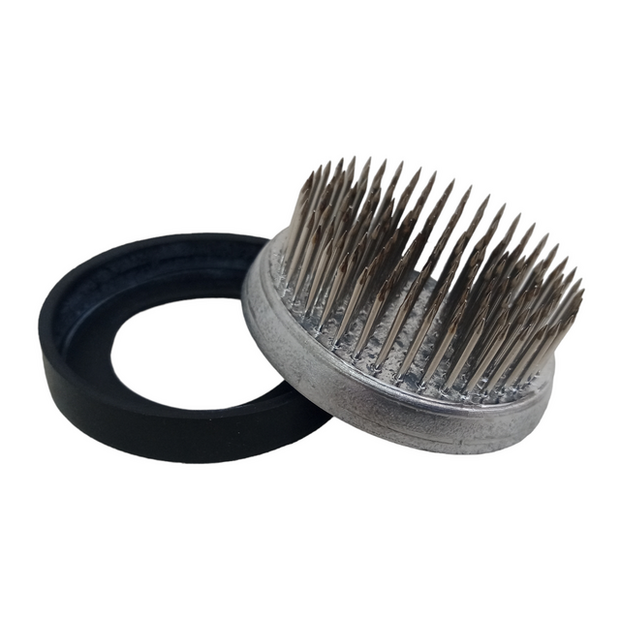 Introducing the FLORALCRAFT® Pinholder - 2" with Detachable Rubber Base, an indispensable tool for both professional florists and DIY flower arrangement enthusiasts. This high-quality pinholder features a compact 1.5" diameter, making it perfect for intricate floral designs and small arrangements. The needle points securely hold flower stems in place, ensuring stability and precision in your creations. The unique detachable runner base adds versatility, allowing for easy repositioning and enhanced stability in various types of containers. Crafted from durable materials, the FLORALCRAFT® Pinholder is built to withstand repeated use, making it a reliable addition to your floral toolkit.