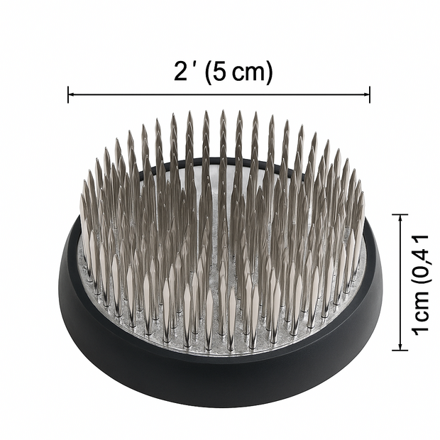 - Secure Stem Support – Fine stainless steel pins grip stems tightly, ensuring stability throughout arranging.