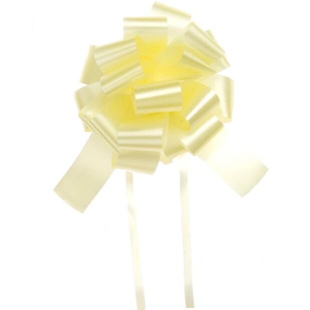 Choice of fashionable coloursOASIS® Poly Ribbon Satin Pull Bows 5cm - Cream * Supplied in a protective acetate box * Choice of fashionable coloursTypical Uses * Creating bows quickly for decorating arrangments and giftsSize: 5cm{com} 18 loop bowPack quantity: 20 pieces