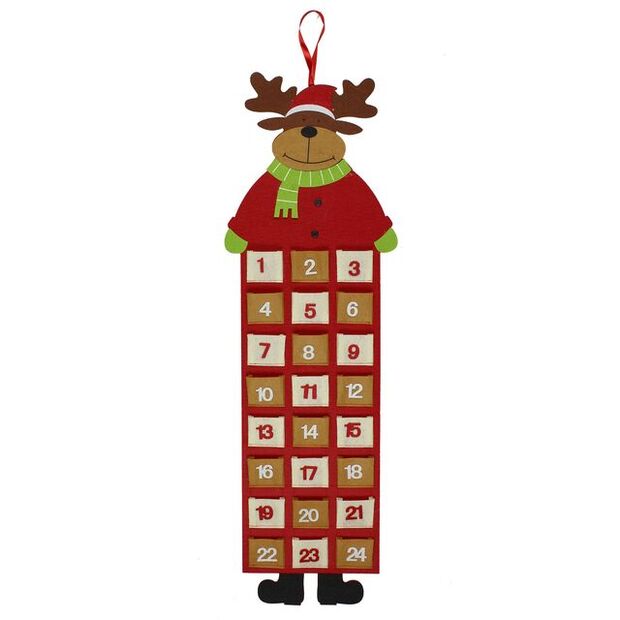 Celebrate the countdown to Christmas with the charming Floralcraft® Reindeer Felt Advent Calendar! Measuring at 85cm long, This adorable reindeer-themed advent calendar is the perfect festive decoration for any home, bringing joy to children and adults alike as they count down the days until Christmas with excitement and cheer.