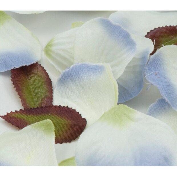 Box of 164 poly satin rose petals and leaves. Ideal for decorating wedding reception tables.