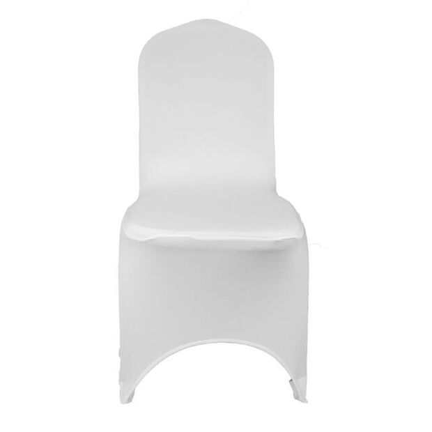 Create a sleek and stylish look for any event with the White Eleganza Spandex Chair Cover. Designed to fit most standard armless chairs, this high quality chair cover with a arch front offers a smooth, snug fit that instantly elevates your venue’s décor.