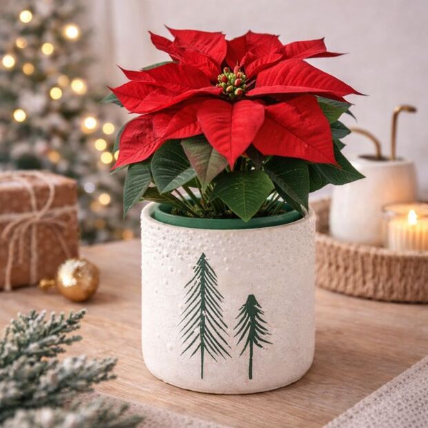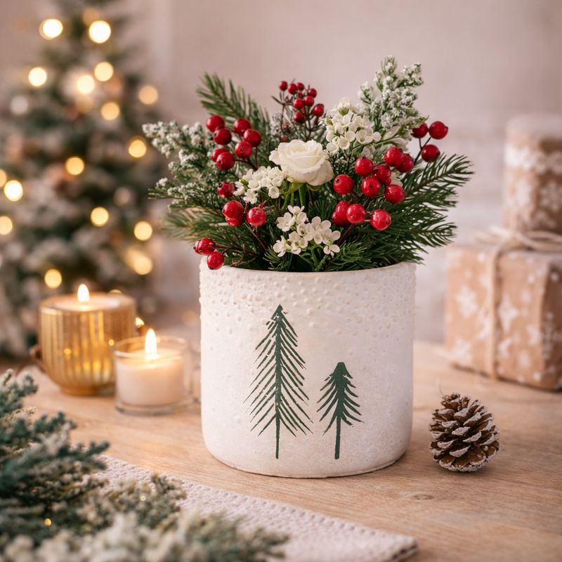 Measuring 14.5 × 14.5 × 13cm, it is ideal for housing standard plastic plant pots, allowing plants to be dropped straight in without repotting. Perfect for festive flowering plants, greenery, or artificial arrangements, it provides a stylish outer cover while keeping the inner pot concealed.