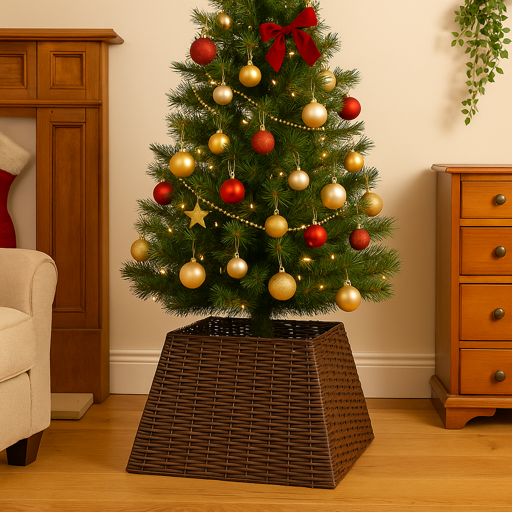Give your Christmas tree a unique, structured finish with this brown square Christmas tree skirt. Designed with a 35×35 cm top, 50×50 cm base and 28 cm height, it provides a neat and stylish way to conceal tree stands or pots while complementing both modern and traditional décor.