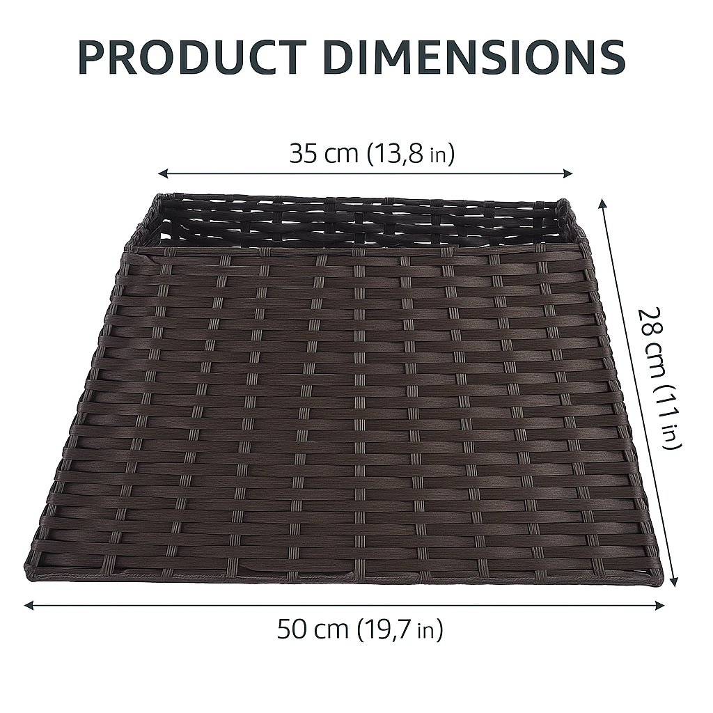 - Square design: Top 35×35 cm, Base 50×50 cm, Height 28 cm
