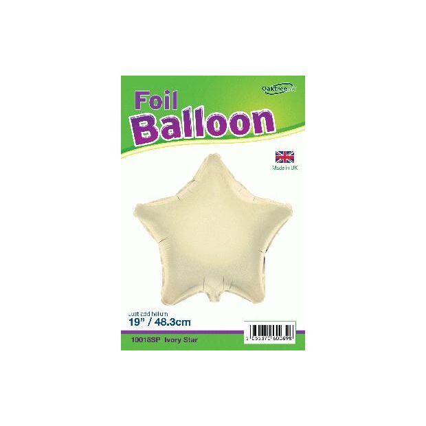 48cm Ivory Star Foil Balloons - remain inflated for days. Round and Heart shape plain foil balloons also available - all in a wide range of colours to suit any occasion.
