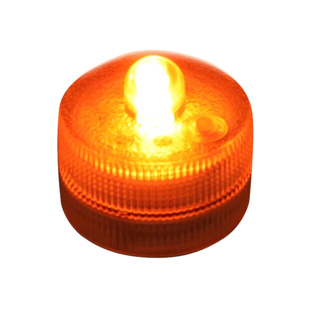 FloraLyte Orange Submersible Lights.Pack of 10 re-usable, waterproof, wireless submersible LED lights, perfect for lighting up vases and any water filled table centerpiece. Battery operated (battery life 36-48 hours - replaceable)