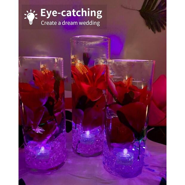 With approximately 36–48 hours of battery life, these submersible LED lights are ideal for long events and multi-day celebrations. Replaceable batteries ensure they can be reused again and again.