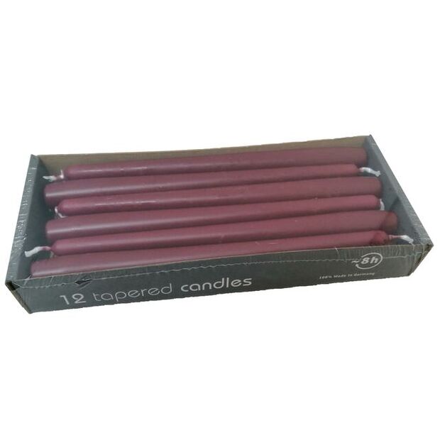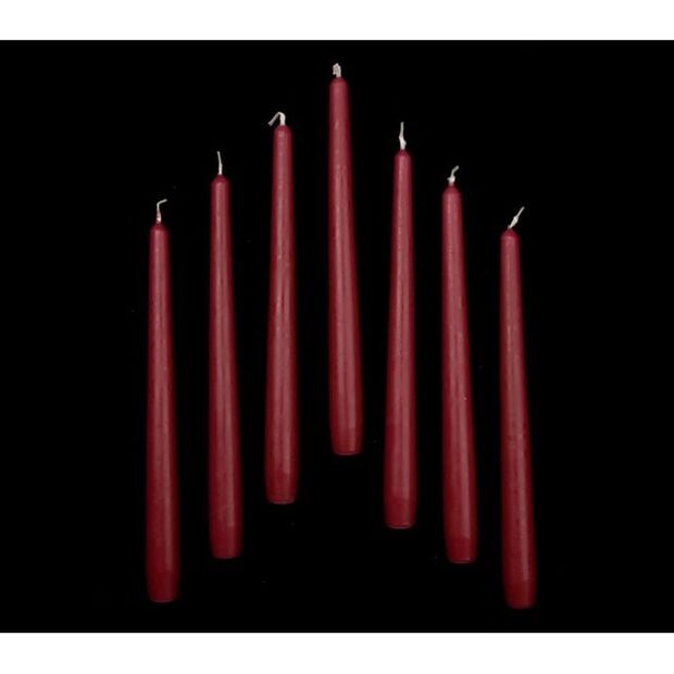 Richard Wenzel® Dark Red Tapered Candles provide a warm touch to any setting. Measuring 250mm tall × 23mm wide, each candle offers a steady flame with an impressive burn time of up to 8 hours.