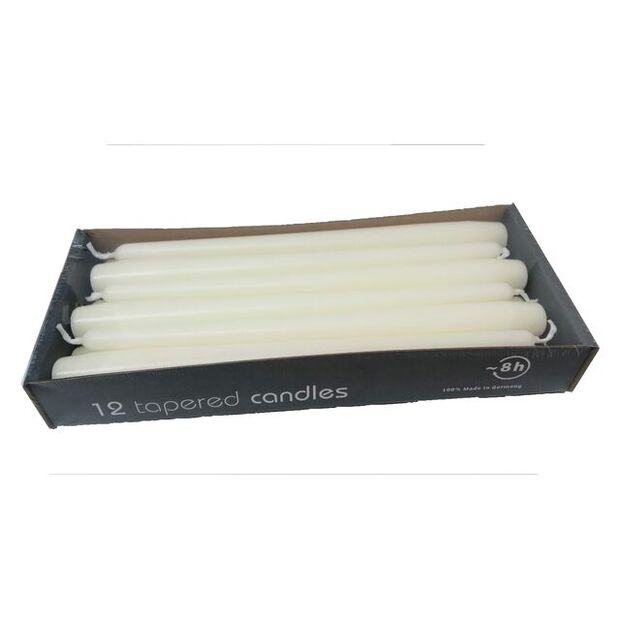 Richard Wenzel® Ivory Tapered Candles provide a classic touch to any setting. Measuring 250mm tall × 23mm wide, each candle offers a steady flame with an impressive burn time of up to 8 hours.