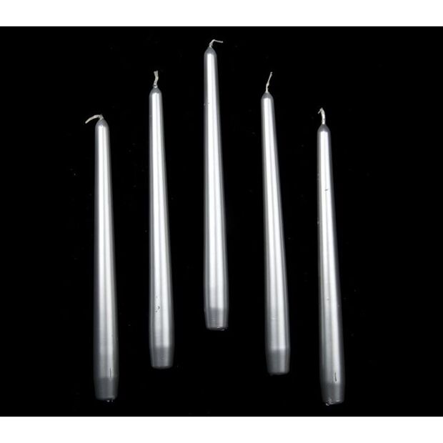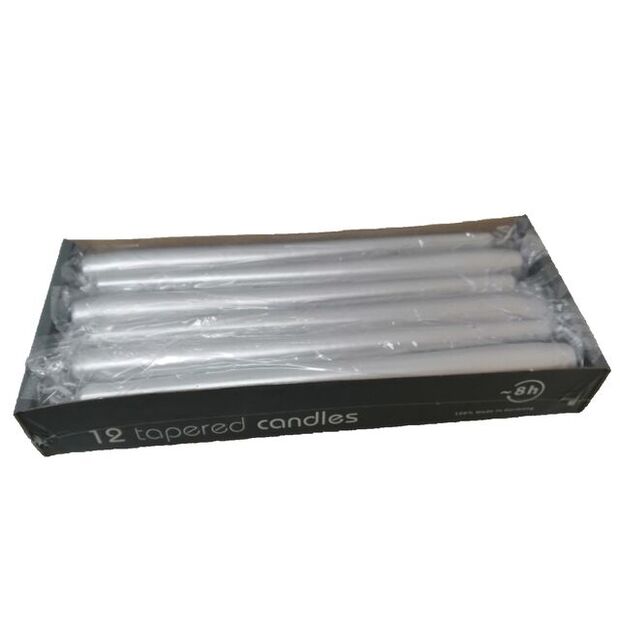 Richard Wenzel® Silver Tapered Candles provide a elegant touch to any setting. Measuring 250mm tall × 23mm wide, each candle offers a steady flame with an impressive burn time of up to 8 hours.