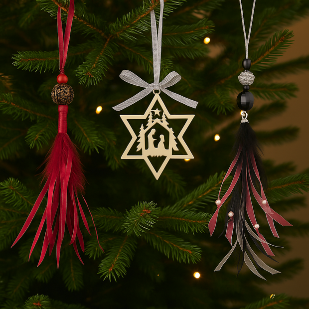 Topped with a silver ribbon for easy hanging, this decorative tassel is ideal for a variety of uses—from floral arrangements and gift wrapping to wedding décor, curtain accents, or seasonal crafts. Its sophisticated colour palette makes it perfect for both modern and classic themes.