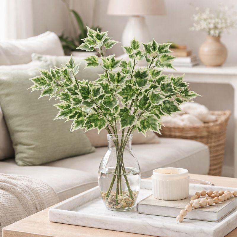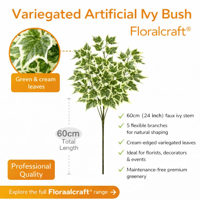 The Floralcraft® Artificial Ivy Bush – Variegated Green is a versatile faux foliage stem designed for professional floristry and decorative use.