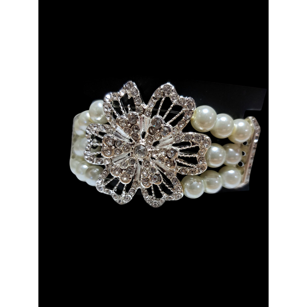 The Vintage Beauty Bracelet is a stunning accessory that exudes elegance and timeless charm. Featuring a delicate champagne color, this bracelet is designed with a dazzling silver flower center surrounded by champagne pearls, adding a sophisticated touch to your look. Sparkling diamontes are strategically placed, giving the bracelet an extra touch of brilliance. The stretch fit design ensures a comfortable and secure fit for most wrist sizes, making it perfect for any occasion, whether casual or formal. Elevate your style with this exquisite piece.