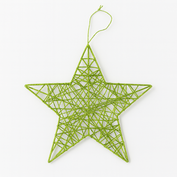 🎄 Lime (Green) 3D Glittered Wire Star – 20 cm