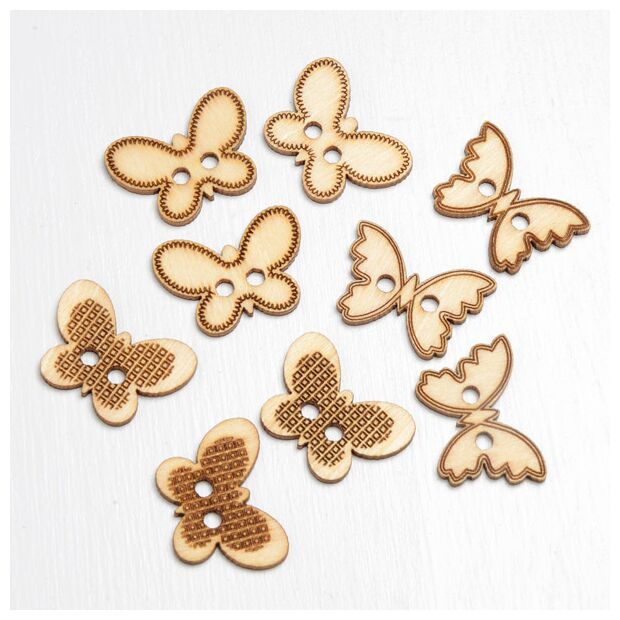 Add a touch of nature to your crafting projects with these Wooden Buttons - Butterflies. Each pack includes 9 beautifully crafted buttons in 3 different butterfly designs, perfect for adding charm and personality to a variety of creative endeavors. These versatile craft buttons are ideal for decorating cards, invitations, guest books, cakes, and wedding or party favours. Made from high-quality wood, each button is lightweight yet durable, ensuring it holds up to all your crafting needs. Whether you're designing for a wedding, baby shower, or any special occasion, these Wooden Butterfly Buttons are the perfect addition to elevate your creations.