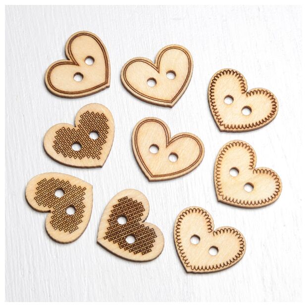 Add a touch of nature to your crafting projects with these Wooden Buttons - Hearts. Each pack includes 9 beautifully crafted buttons in 3 different heart designs, perfect for adding charm and personality to a variety of creative endeavors. These versatile craft buttons are ideal for decorating cards, invitations, guest books, cakes, and wedding or party favours. Made from high-quality wood, each button is lightweight yet durable, ensuring it holds up to all your crafting needs. Whether you're designing for a wedding, baby shower, or any special occasion, these Wooden Heart Buttons are the perfect addition to elevate your creations.