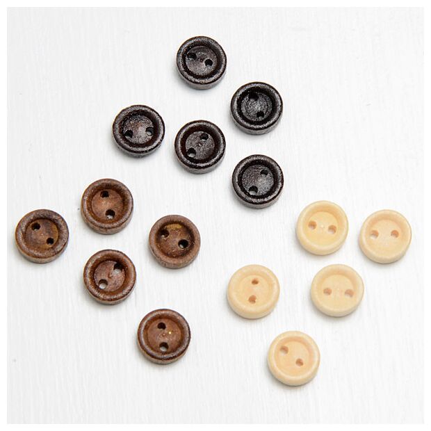 Add a touch of nature to your crafting projects with these Wooden Buttons - Round. Each pack includes 15 beautifully crafted buttons in 3 different colours, perfect for adding charm and personality to a variety of creative endeavors. These versatile craft buttons are ideal for decorating cards, invitations, guest books, cakes, and wedding or party favours. Made from high-quality wood, each button is lightweight yet durable, ensuring it holds up to all your crafting needs. Whether you're designing for a wedding, baby shower, or any special occasion, these Wooden Round Buttons are the perfect addition to elevate your creations.